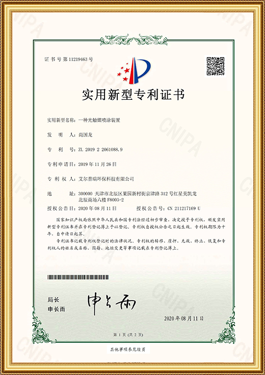實(shí)用新型專利證書(shū)(一種光觸媒噴涂裝置)
