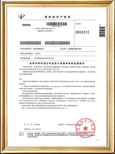 實(shí)用新型專利證書(shū)(一種負(fù)氧離子清除液的噴涂